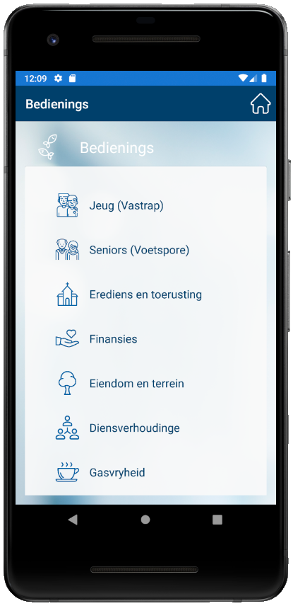 Kry alle funksies in ons gemeenskaplike toep. Elke kerk kies sy eie bedieninge, kleure en logo. Lede laai 'n algemene toep af en kies hul kerk.